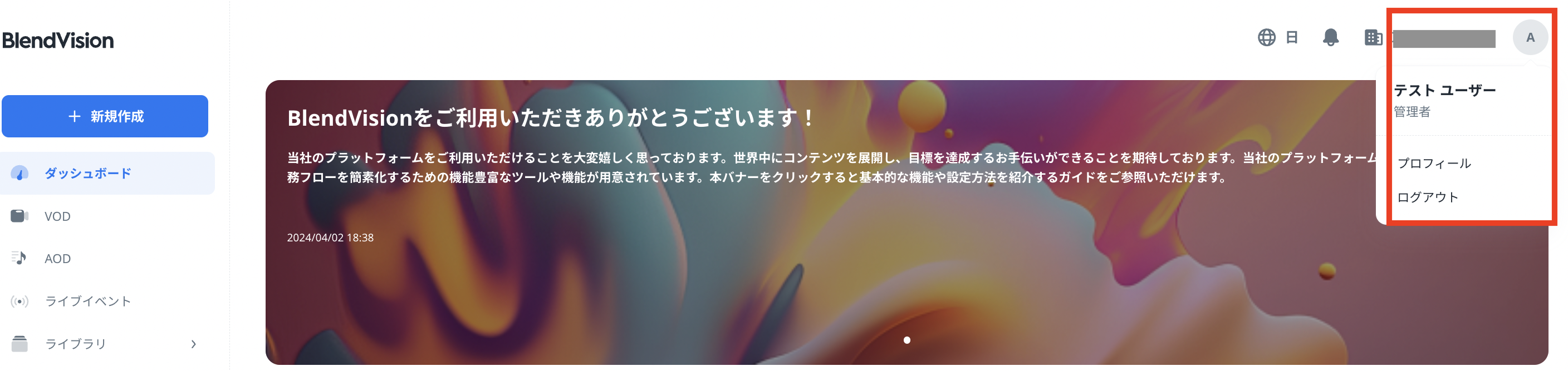 BlendVisionウェブコンソールにログイン