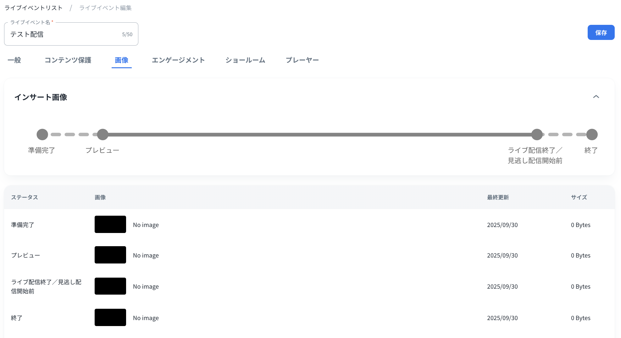 正常に保存されると、ライブイベントリストにリダイレクトされます。ライブイベントのステータスは「終了」から「準備中」に変わり、再びライブイベントを利用できるようになります。