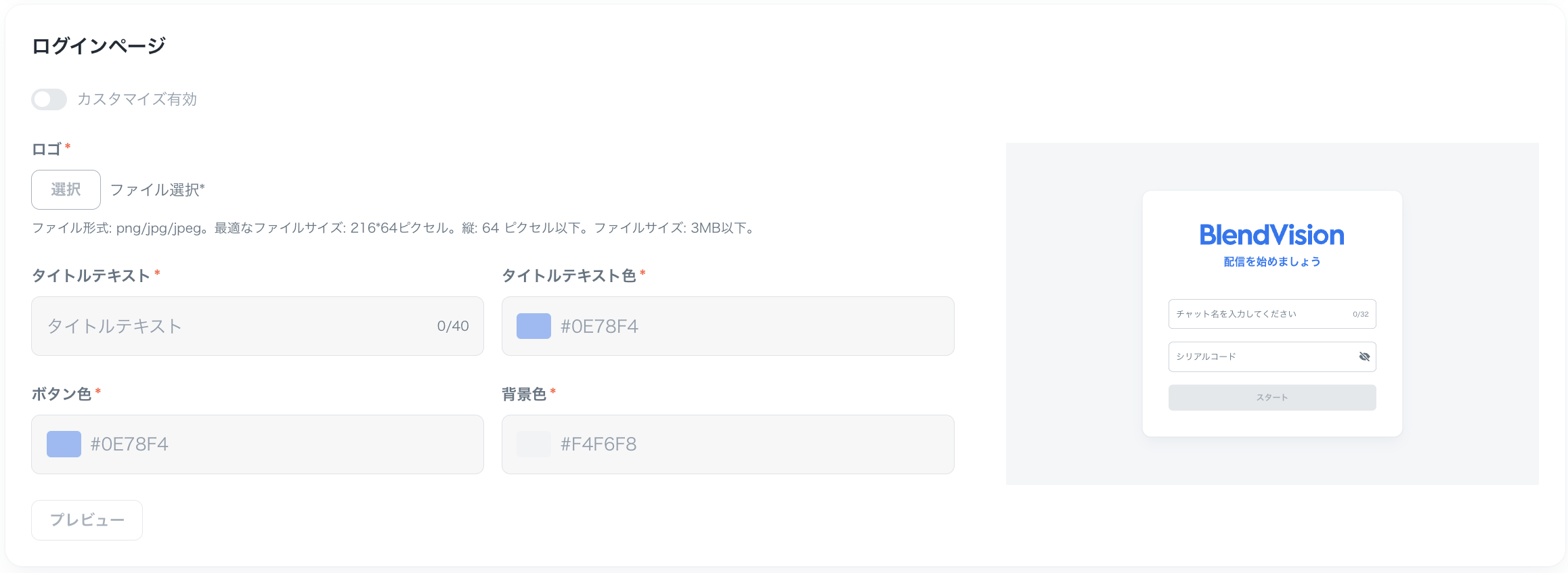 公開設定で「トークン」が選択されている場合、視聴者はニックネームとシリアルコードを入力することでメインページに移動できます。