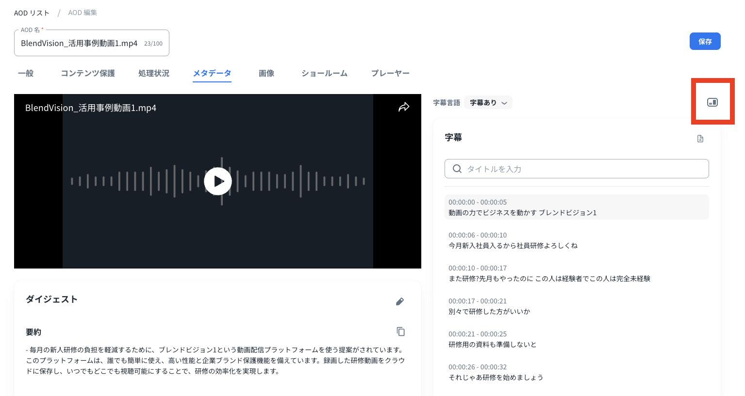 アイコンをクリックする事で「字幕」と「ダイジェスト」の表示位置を変更する事ができます。