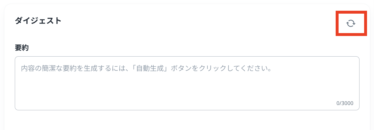 「保存」をクリックして再生成を開始すると「ダイジェスト」の枠内に以下が表示されます。