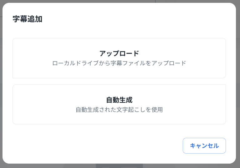 「字幕追加」をクリックすると字幕の追加方法を選択する画面が表示されます。