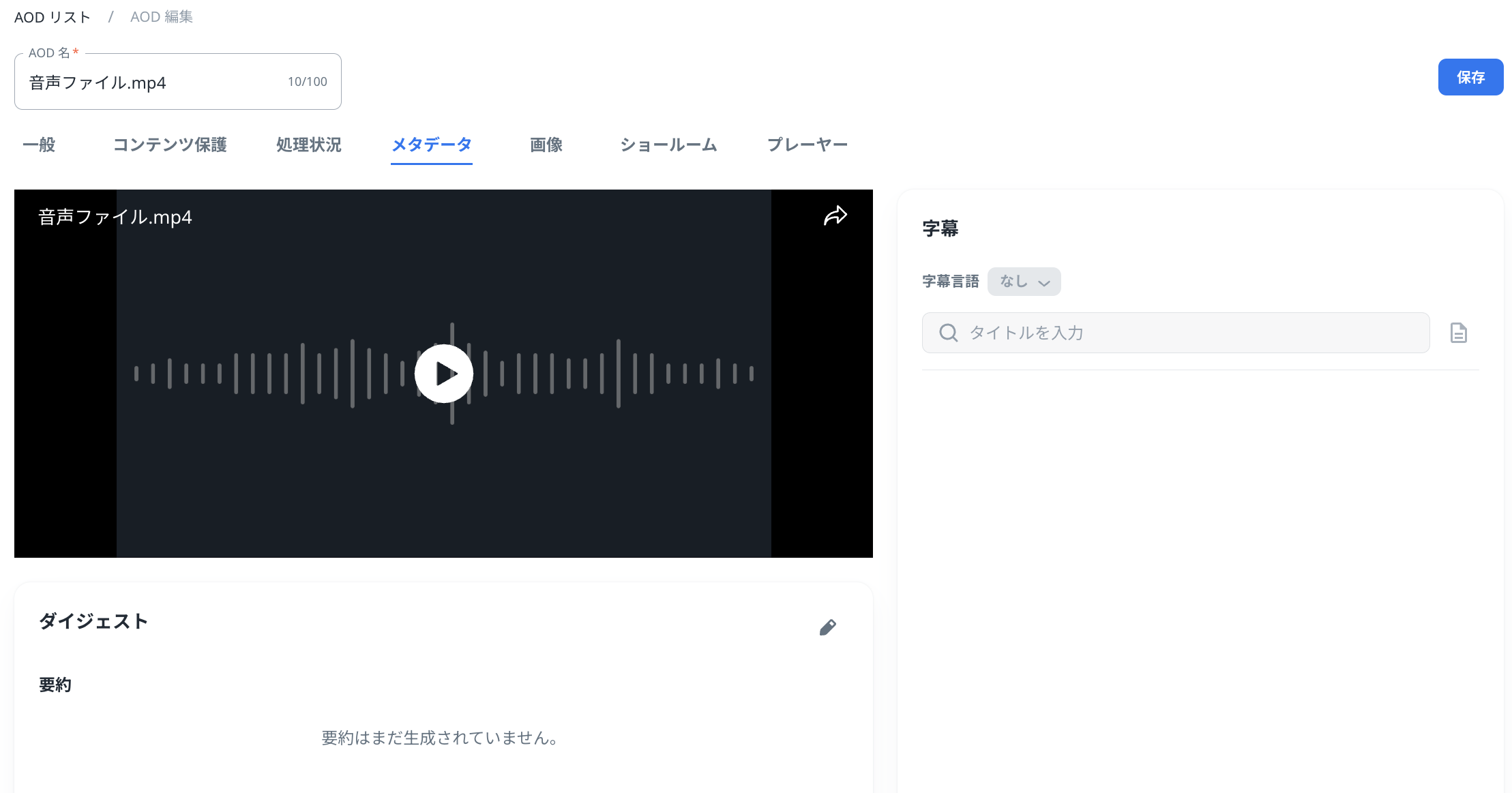 AODが作成されると「コンテンツ保護」内のDRMと視聴地域が編集できなくなります。