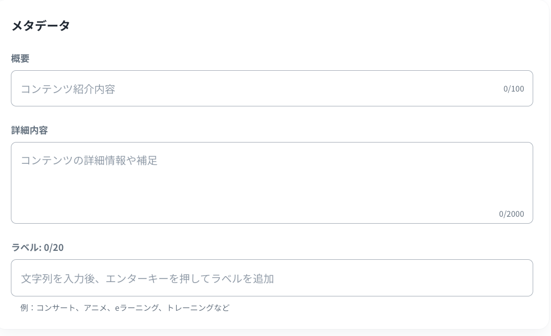 ラベル:コンテンツの管理、またはフィルタリングのためのラベルを設定(最大20個)