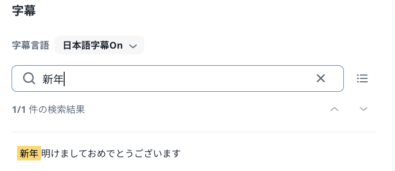 検索バーでは字幕からキーワード検索が可能です。