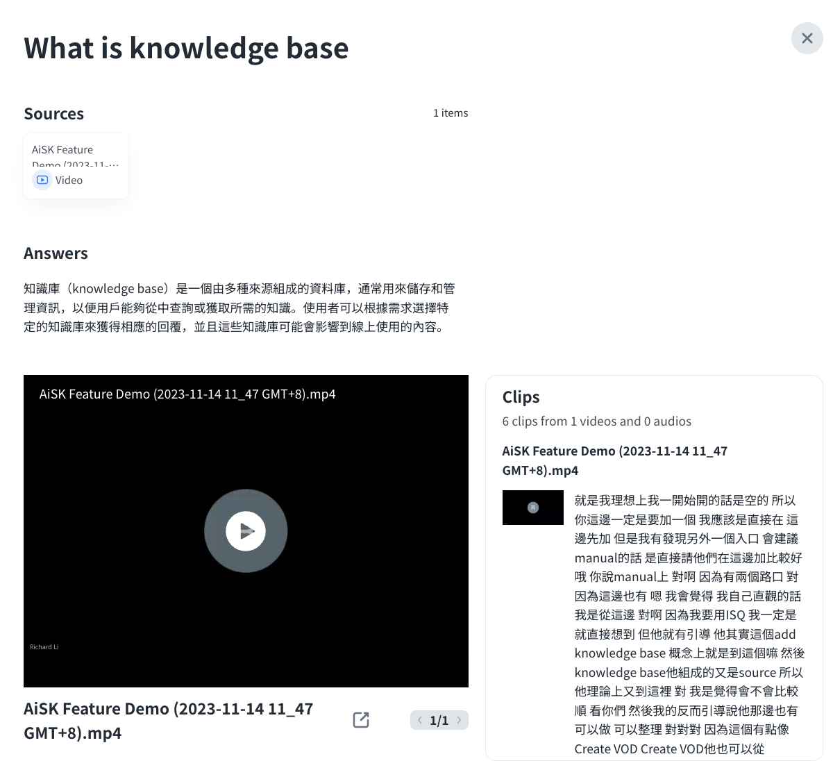 • Clips: The related clips of the question will be extracted.