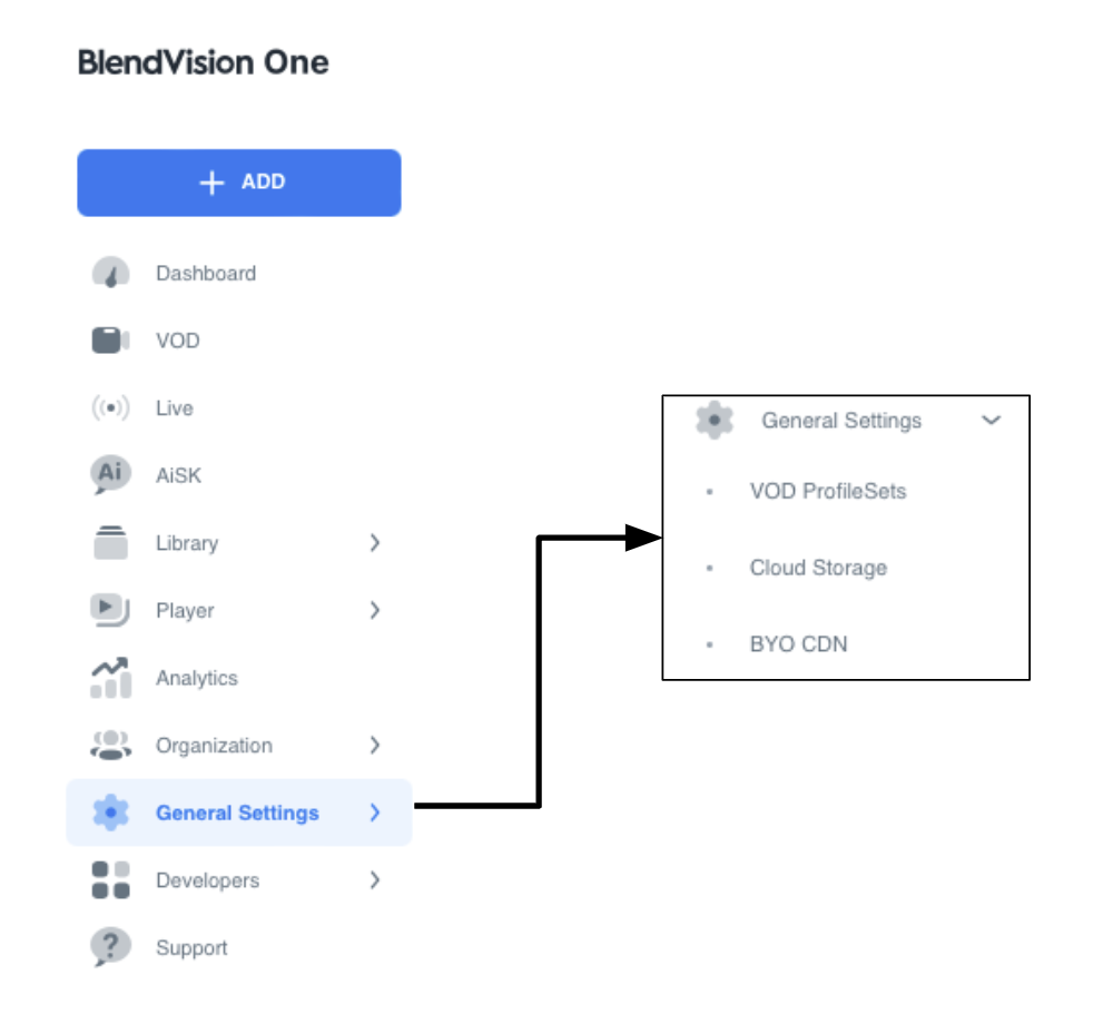 You can access the following settings through the “‘General Settings” item in the left sidebar on the BlendVision web console.