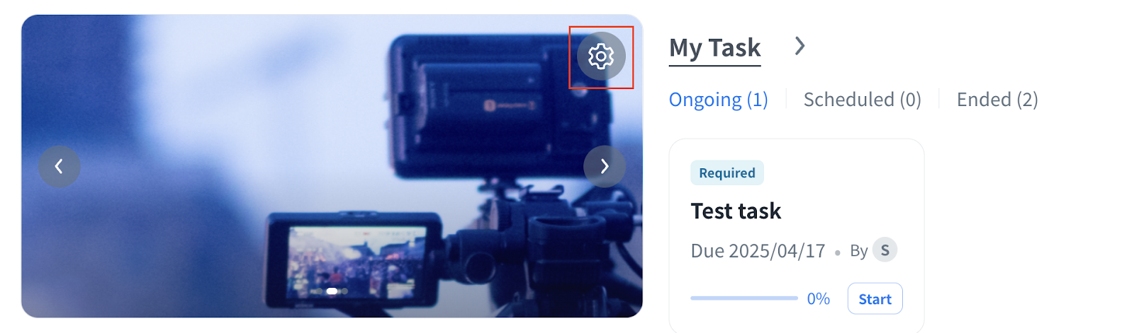 You can manage carousel banners from the setting icon on the right upper side of the banner.