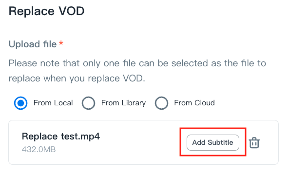 - Click the "D****elete" icon to delete the uploaded subtitle(s)