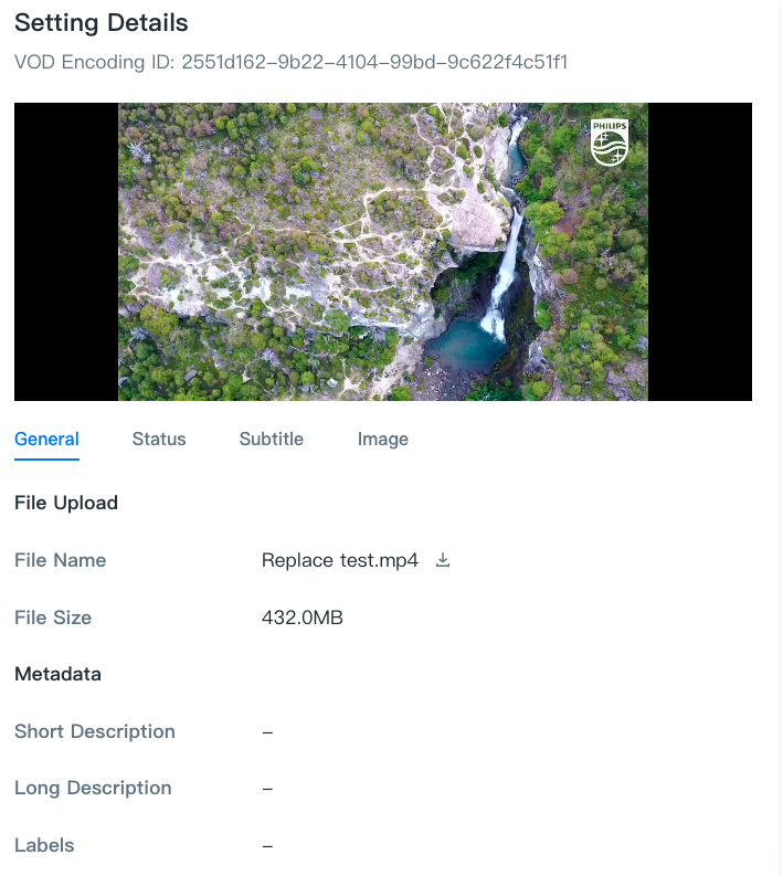 In the General tab, you can confirm and edit information about the encoded VOD.