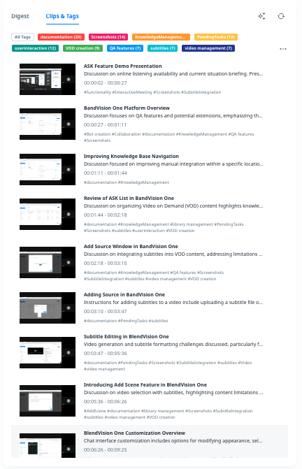 The auto-gen clips and tags will be displayed on the player once the VOD encoding is completed and the generated clips can be hidden/shown by tags.