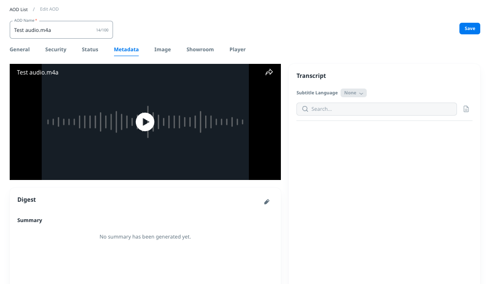 The AOD content will be available for playback once encoding is completed. You can opt to set a specific period for playback availability.