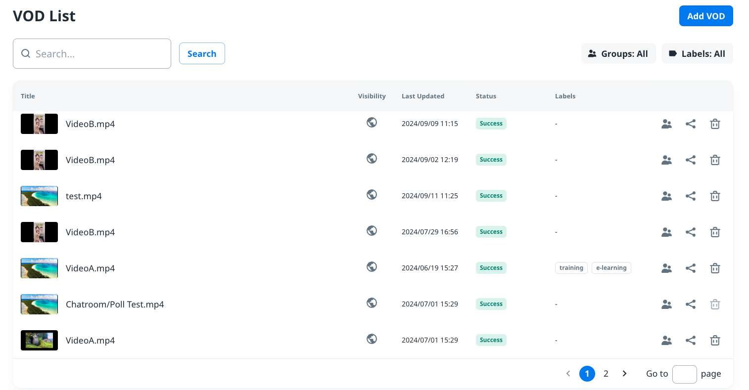 - If you want to know more editable settings when editing an encoded VOD, refer to Edit a VOD.