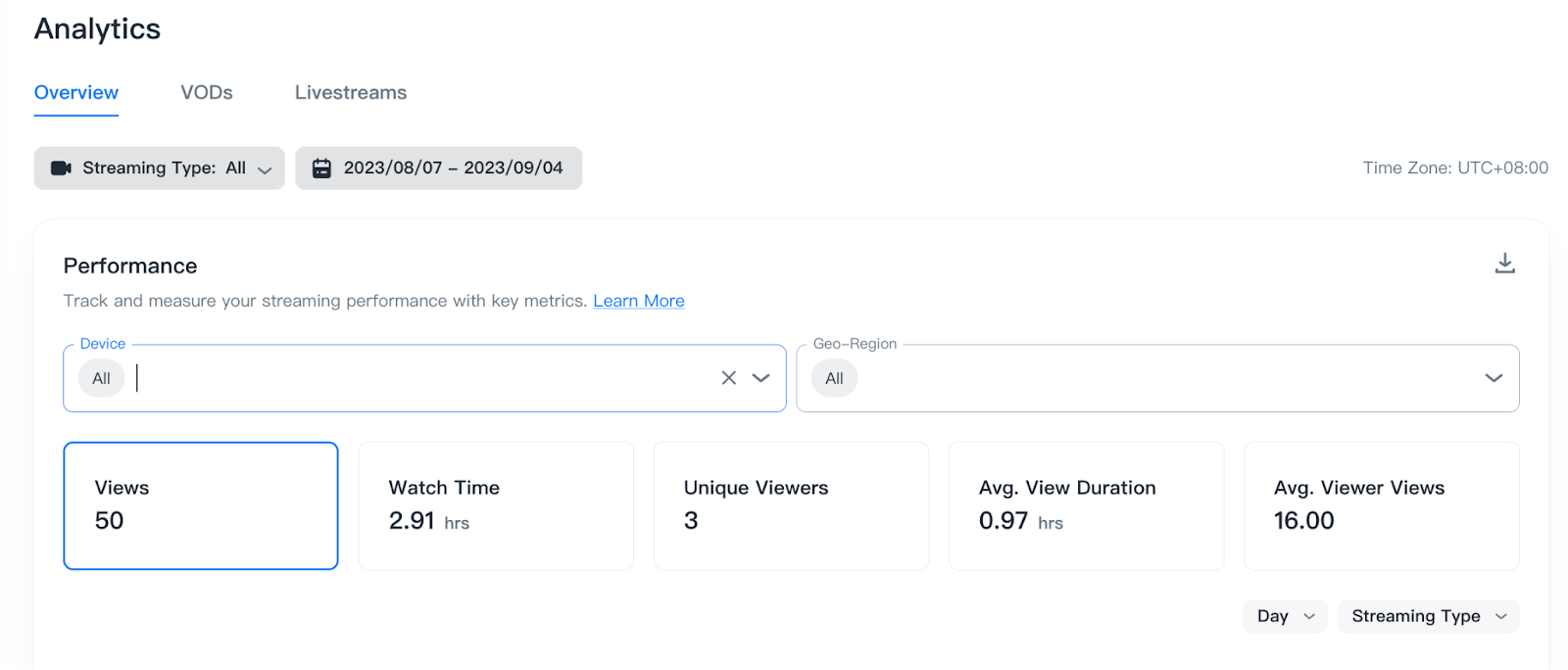 - 如果沒有選擇任何維度,報告將只按內容類型(VOD、直播)分解。
