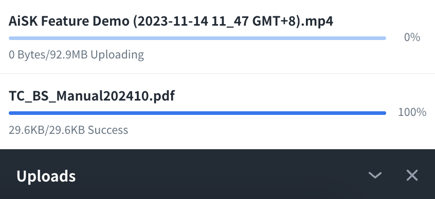 After the uploads are completed, the uploaded files will be listed on “Explore” > “Knowledge Hub” on the left sidebar.