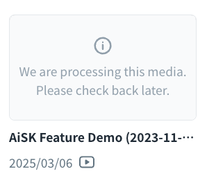When the media is encoding, the message “We are processing this media. Please check back later” will be displayed in the thumbnail.