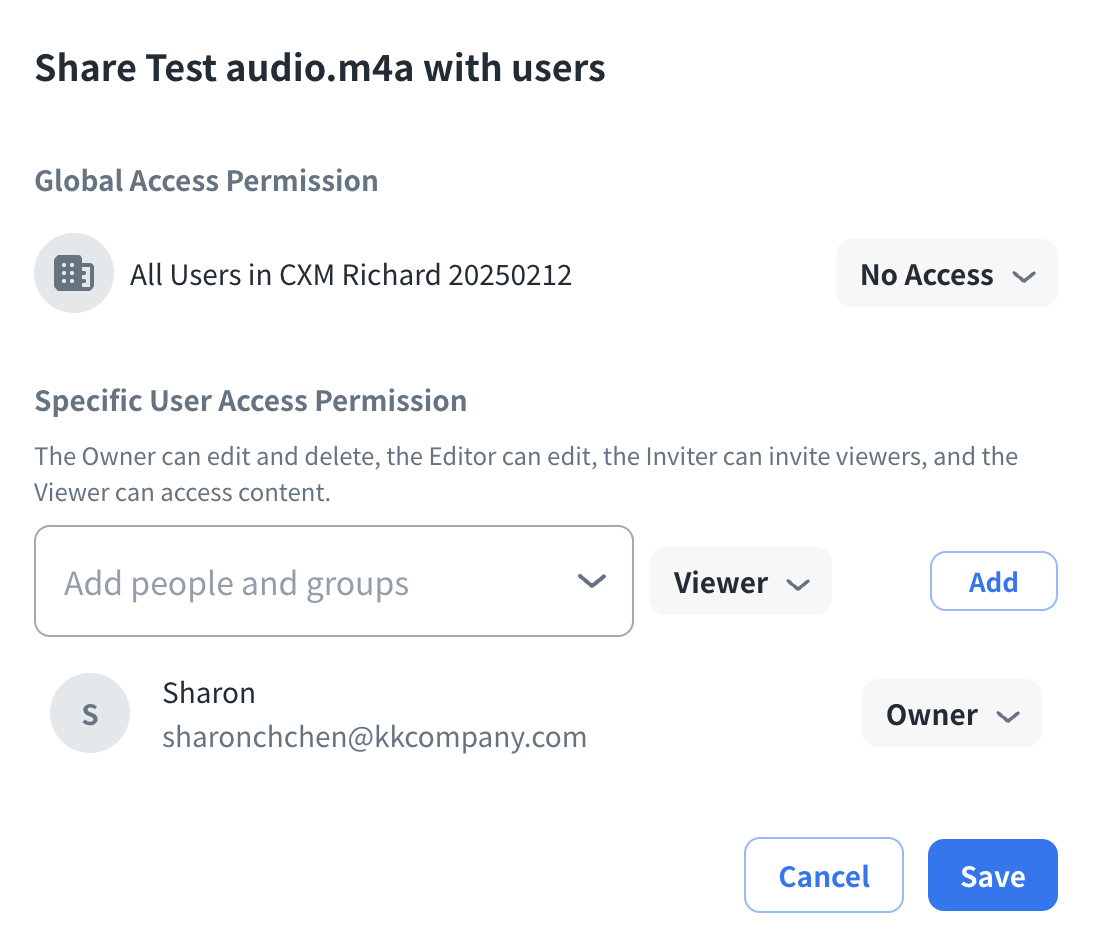 icon, where you can grant the access permissions of each content to the users or specific people/groups in the organization.