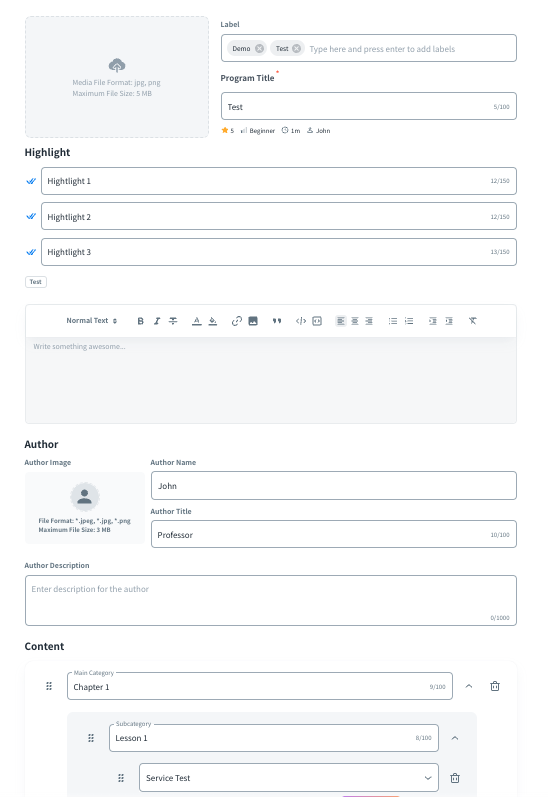 - Permission: To edit the program’s access permission, please refer to Content Permission Management for more information.