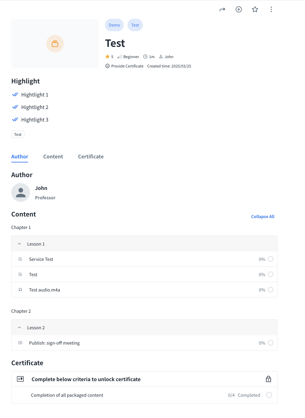 - Certificate record: Click Certificate Record icon to confirm the details of certificate records of the users who have completed the program.