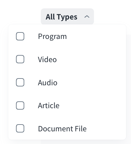 - Filter the content by Types: Click the thumbnail to go to the detailed page of the content.