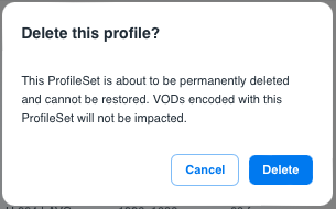 Profile 是ProfileSet 的一部分。有關 Profile 和 ProfileSet 之間關係的資訊,請參閱 VOD ProfileSets。