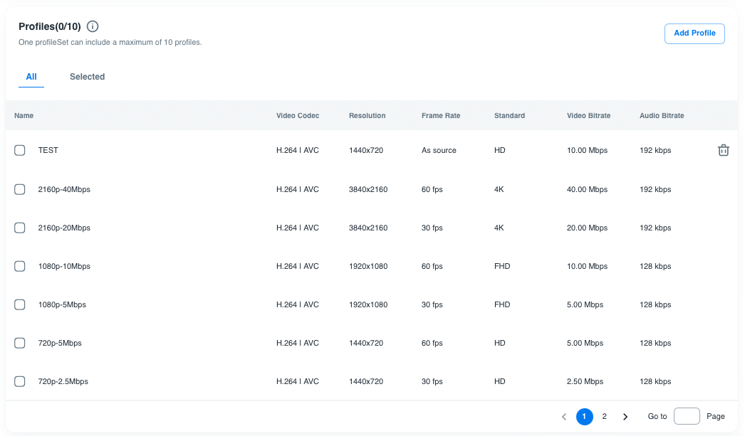 Profile 定義了編碼時影片的解析度、影片位元率和音訊位元率。此外,這也影響了轉檔的成本、儲存和VOD的CDN使用。
