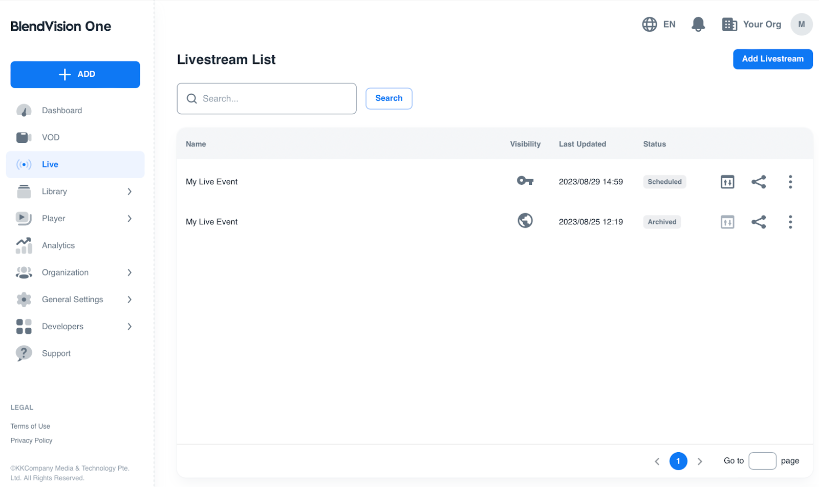 在繼續之前,請確保您擁有BlendVision One帳戶/商業組織,以創建/操作您的直播活動。