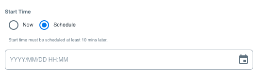 開始時間:您可以選擇「現在」或「安排時間」。選擇「安排時間」選項時,您需要設置預期的開始日期/時間。