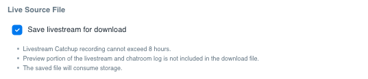 直播源檔案:您可以啟用此選項以錄製直播活動並將其作為新的MP4檔案保存在視頻庫中。