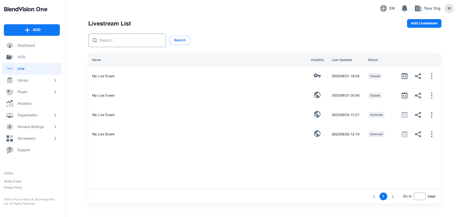 BlendVision One允許您重用已關閉的直播活動,以減少從頭創建新活動的時間和困難。