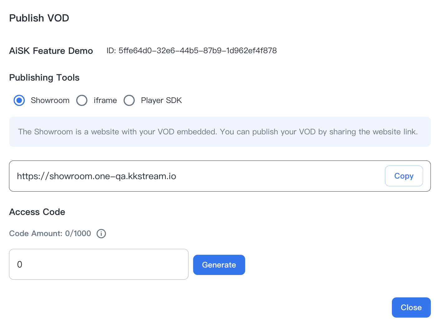 要通過iframe播放器發佈您的點播內容,請按照以下指示操作: