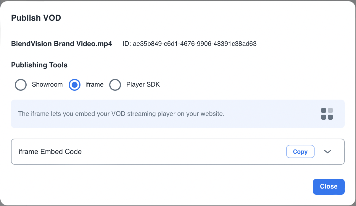 注意:使用iframe播放器發佈時,您可能需要整合BlendVision API。