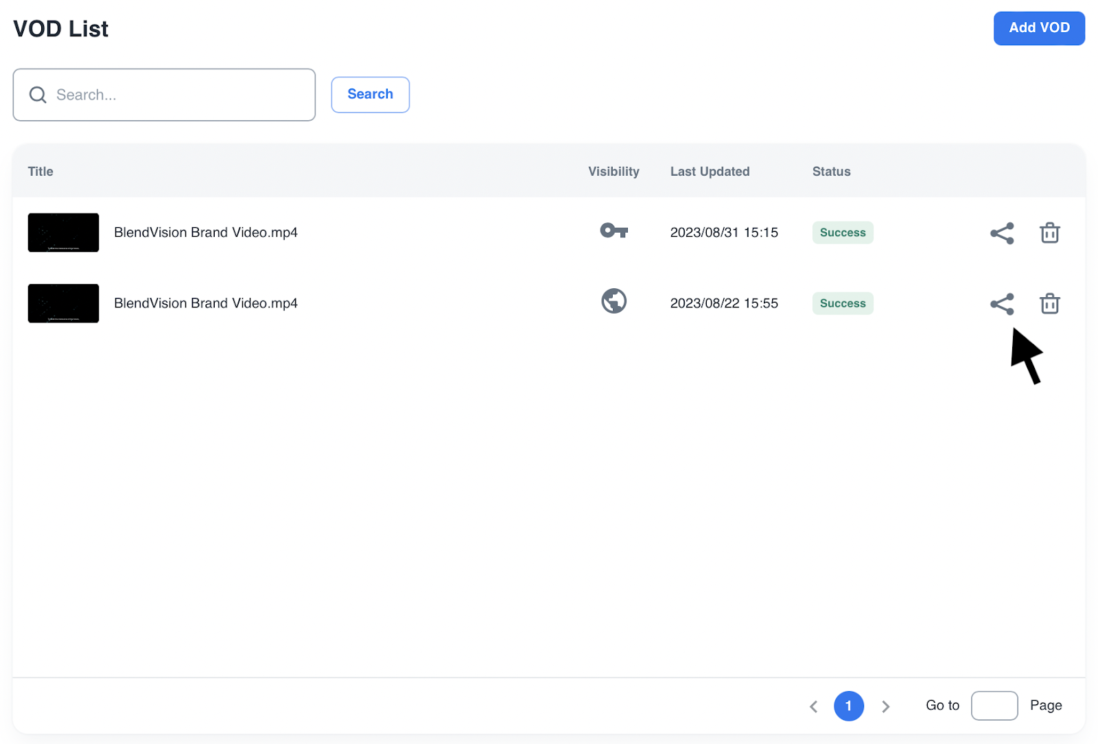 點擊 VOD 列表中您的 VOD 右側的發佈工具圖標